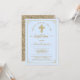 Invitations de baptême bleu et or avec belle croix or et arrière - plan frontière or. Cette invitation au baptême bleu et or est facilement customisée pour votre événement en ajoutant vos détails. Vous pouvez également modifier la couleur du texte et de l'arrière - plan à la couleur que vous préférez. Vous pouvez retirer l'arrière - plan d'impression de parties scintillant du côté arrière et ajouter la couleur de votre choix à cette belle invitation polyvalente.