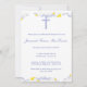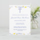 Invitation au baptême avec nuage, étoiles et croix bleue.