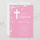 Commencez votre baptême du Saint-Baptême avec notre invitation au baptême rose et blanc sucré, avec une belle floraison de fantaisie blanche avec une croix blanche posée sur un arrière - plan rose sucré. Le verso de notre invitation est assorti d'un florilège. Facile à customiser, ajoutez simplement vos informations d'événement et vous êtes tous prêts à partir. Invitation parfaite pour une première communion sainte, baptême, baptême ou fête de confirmation. Une invitation au baptême élégante et branchée est disponible dans notre boutique dans un grand choix de arrière - plans.