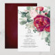 Invitation Baptême élégant à la florale rouge bordeaux et ros