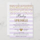 Invitation Baptême Fille Confettis Rayures Or Lavande