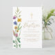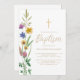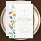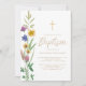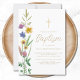 Cette invitation au baptême floral est décorée de fleurs sauvages d'aquarelle et d'une croix. Facile à personnaliser. Aquarelle originale © Michele Davies.