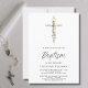Cette élégante invitation au baptême floral est décorée d'une croix fleur sauvage et d'une typographie de script. Facile à personnaliser. Aquarelle originale © Michele Davies.
