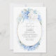 Fleurs bleues et blanches douces et poussiéreuses invitations à célébrer le baptême