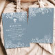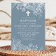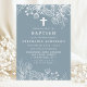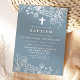 Célébrez l'occasion sacrée d'un baptême avec cette belle invitation florale bleu et blanc poussiéreux. Dotée de motifs floraux blancs complexes sur un arrière - plan bleu poussiéreux, cette invitation est parfaite pour inviter amis et famille à participer à cet événement spécial. Les élégants éléments floraux apportent une touche de beauté et de grâce naturelles, ce qui en fait l'endroit idéal pour une célébration si significative. Customisez les détails pour créer une invitation unique et mémorable pour le baptême de votre enfant.