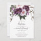 Baptême violet et prune boho floral peint à la main d'aquarelle invitation avec élégante typographie manuscrite.