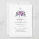 Magnolias et roses violets dans un bouquet peint à la main avec des accents de baptême bleu, baptême ou invitation à la dédicace conçu pour être rapidement et facilement customisé pour votre journée spéciale.