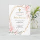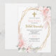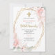 Baptême floral rose espagnol invitation. Invitación de bautizo para niña con flores rosa pastel.