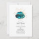 Invitation Baptême floral turquoise et or