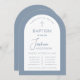 Invitation Baptême garçon Dusty Bleu Blanc Arc Script Moderne