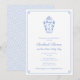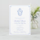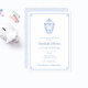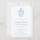Cette invitation de Baby Shower à monogramme bleu et blanc présente mon illustration originale à l'aquarelle d'un pot à gingembre. Celle-ci a été peinte à la main par mes soins avant d'être numérisée. Comme mentionné, j'ai configuré le modèle pour une Baby Shower ou une Sprinkle, mais tous les champs de texte sont personnalisables selon vos besoins. Ce design pourrait également convenir pour une douche de mariage, en utilisant la ligne supplémentaire [sous le nom de l'invité d'honneur] pour dire quelque chose comme "la future Mme X". Le devant comporte une bordure "clé grecque" et le verso un motif "clé grecque". La couleur de contraste sur les deux (actuellement un bleu clair) peut être changée en n'importe quelle autre couleur de votre choix.