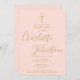 Invitation Baptême moderne Christening Gold Script Blush Rose