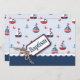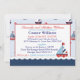 Carte d'invitation au baptême sur le thème nautique avec voiliers, crabes et ancres avec un arc et une étiquette en forme de fil 3D.