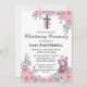Explorez mon 'Pink Floral Baby Girl Christening/Baptism Invitation', qui présente une belle aquarelle fleurie avec une petite fille en pull rose, ornée d'une croix en haut pour symboliser le baptême. Ce modèle est entièrement personnalisable pour en faire le vôtre.