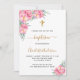 Un arrière - plan blanc décoré de fleurs roses. Personnalisez et le nom des enfants et les détails de la cérémonie. Lettres noires et dorées. Dos : couleur arrière - plan rousse.