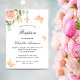 Un arrière - plan blanc décoré de verdure d'eucalyptus, d'or rose et de rose rose rousse, de feuilles dorés et de papillons. Personnalisez et le nom des enfants et les détails de la cérémonie.