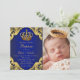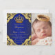 Bleu royal et or Baptême du prince avec couronne bleu royal et or sur un bel arrière - plan royal bleu et or tourbillon. Cette élégante invitation au baptême bleu et or royal est facilement customisée pour votre événement en ajoutant vos photos et détails de l'événement, le style de police, la taille et la couleur de police et le libellé. Il s'agit d'un design imprimé sans vrais bijoux, parties scintillant, etc.