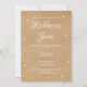Baptême rustique invitation à baptiser avec d'élégants coeurs d'or qui sont éparpillés autour de vos détails personnalisés d'événement mis en texte blanc sur un arrière - plan kraft rustique. L'inverse a aussi dispersé des coeurs d'or !