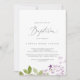Cette invitation au baptême lilas rustique est parfaite pour un baptême de bébé au printemps ou en été. Le design floral romantique et élégant présente des fleurs sauvages lilas violets d'aquarelle aux allures de jardin boho.