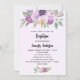 Invitation Baptême violet fleurs croix de verdure