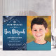 Soyez fier, réjouissez-vous et présentez cette étape importante de votre Bar Mitzvah préféré ! Envoyer cette invitation photo cool, unique, moderne, personnalisée pour un événement à retenir. Sur le côté gauche, le script blanc, la typographie audacieuse, et l'étoile de David, avec l'agate bleue en acier accentuée de faux veines argentées, recouvrent un arrière - plan sombre bleu marine et ombre. Sur la droite, la photo de votre choix. Personnalisez le texte personnalisé avec le nom, la date et les informations sur le lieu de votre Bar Mitzvah. Garanti d'ajouter du style à son occasion spéciale ! Ajoutez simplement votre photo personnelle, entrez le nom de votre fils, la date, le lieu du temple et d’autres informations, et vous pouvez facilement personnaliser cette invitation Bar Mitzvah. S'il vous plaît, envoyez-moi un message avec toute question ou demande.