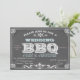 Un barbecue mariage rétro vintage (bar b que) à l'allure modèle en tableau noir avec des motifs ornementaux et des fleurs.