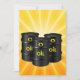 Trois barils noirs d'huile contre un arrière - plan jaune. Cette conception semble vraiment efficace sur ces Invitation