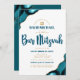 Invitation Barre de code QR Mitzvah Turquoise Agate Script Bl