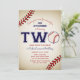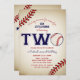 Invitation de baseball 2e anniversaire. Batterie ! Cette conception festive de baseball est amusante sportive pour le deuxième anniversaire de votre enfant. Le design comporte un arrière - plan de baseball vintage avec le mot "Deux", le "O" étant remplacé par un baseball.