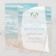 Invitation de fête de Bachelorette | Mariage de plage géométrique à monogramme moderne | Une touche moderne sur les invitations de mariage de plage - Mariage unique conçu pour laBarefootBride™ par ©WhimsicalArtwork™ présente une forme géométrique de style terrarium décalé avec des transparences variables dans les facettes pour permettre au fond de la plage océanique tropicale d'apparaître sous diverses formes et intensités. Une approche ludique de la typographie dans le texte - avec les initiales des noms de la mariée et du marié entourées d'une couronne de laurier en haut - en deux couleurs (sarcelle et or) - suivies de polices serif coordonnées en bleu vert grisâtre (repris de l'océan) sarcelle (repris des vagues de l'océan en arrière-plan) et lettrage or. Les détails du mariage sont clairs et simples sur le recto de l'invitation uniquement - un design de plage tropicale coordonné au verso. Tous les textes, y compris les styles et