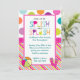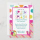 Adorable, coloré, point de polka et rayé de l'invitation à la baudruche d'anniversaire d'anniversaire Splash! Également disponible dans un jeu de couleurs primaires non sexiste ou pour garçons. Idéal pour une fête de billard d'anniversaire, une fête de pétanque ou toute fête d'été ou de thème aquatique !