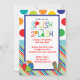 Adorable, pois polka et rayure de l'invitation à la baudruche d'anniversaire d'anniversaire d'anniversaire Splash. Également disponible dans un jeu de couleurs roses. Idéal pour une fête d'anniversaire, une pataugeoire, une plage, un été ou une soirée sur le thème de l'eau !