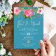 Soyez fier, réjouissez-vous et présentez ce jalon de votre Bat mitzvah préféré avec cette invitation sophistiquée et personnalisée ! Une aquarelle florale chic, étonnante, rose et pêche, avec typographie de scénario de feuille d'or faux et type moderne blanc sans serif superposent un arrière - plan bleu turquoise turquoise poussiéreux. Personnalisez le texte personnalisé avec le nom, la date et les informations de votre Bat mitzvah. Garantie d'ajouter du plaisir élégant à son occasion spéciale! Il suffit de taper le nom de votre fille, la date, le lieu du temple et d’autres informations, et vous pouvez facilement personnaliser cette invitation Bat mitzvah. S'il vous plaît, envoyez-moi un message avec toute question ou demande.