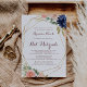 Cette invitation rustique feuille de calligraphie bat mitzvah est parfaite pour un bat mitzvah moderne. Le design est composé d'une aquarelle dessinée à la main, de violet, de bleu, de bordeaux, de fleurs de marine, de feuilles verts et d'or ornant un cadre géométrique élégant.