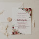 Cette invitation à bat mitzvah de calligraphie florale d'été rustique est parfaite pour un bat mitzvah moderne. Le design est composé de fleurs d'aquarelle bordeaux, roses et rousses avec des feuilles verts dans un arrière - plan verni brun.