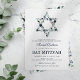 Elégante invitation à la fête de mitzvah avec un simple arrière - plan blanc qui peut être changée en n'importe quelle couleur, une étoile florale bleue de david, et un modèle bat mitzvah moderne facile à personnaliser.
