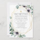 Vert eucalyptus géométrique tendance et fleurs de pavot dans les tons pastel bat mitzvah invitation avec cadre géométrique or et lave à l'aquarelle menthe inverse.