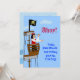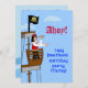 L'avant a un pirate dans un bateau de pirate avec un drapeau de jolly roger. Il regarde hors d'un regard et d'un pointage. L'invitation personnalisée indique, "oh ! Je remarque la fête d'anniversaire de Jonathan, de copain !"
