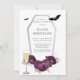 Vous aimerez ces fleurs de pivoines violettes et ces faux cercueils en feuille d'argent avec des chauves-souris noires éffrayantes. Correspond aux invitations à correspondre.
