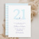 Un modèle élégant et moderne de 21e anniversaire pour les femmes avec un thème nautique, avec une empreinte d'encre des vagues de l'océan, un petit bateau et mouettes volant au-dessus, typographie classique avec une touche moderne, calligraphie moderne, ainsi que des bandes sur le dos. Un beau choix pour une fête de 21e anniversaire de plage, une fête de la côte, du lac, du bord de l'eau, du bateau ou du yacht pour une femme de 21ans.