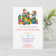 Deux jeunes enfants construisent joyeusement des tours de blocs colorées ensemble à une fête d'anniversaire très animée. Entourés d'une multitude de formes et de teintes, ils partagent le rire et la créativité, faisant des souvenirs par le jeu imaginatif.