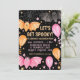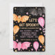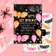 Une éffrayante invitation à la fête d'halloween pastel avec chauves-souris éffrayantes, ballons, toiles d'araignée et confettis en rose pastel et orange sur un arrière - plan noir. Customisez-le aujourd'hui ! Voir l'ensemble de la collection de fêtes de correspondance.