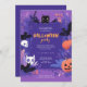 Invitation Bats et chats mignons violets Fête d'Halloween