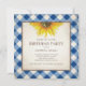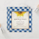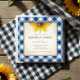 This country Birthday BBBQ Invite la adorned with a blue picnic checkered tablecloth design with a bold yellow sunflower in a unique square format. Your barbecue details are set in sans typographiy in a complimentary brown . The vintage paper design is carried over to the back of your invite. Perfect for summer company bq parties, family get together invitations, bbbq birthday invitations or whatever you like. To see more invitations visit VG Invites