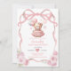 Invitation Bear Pink Bow Ribbon Premier anniversaire