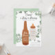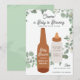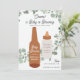 Un design d'illustration de bouteille de bière avec eucalyptus aquarelle. Un design thème bière rétro idéal pour une fête bébé co-ed. Une illustration parfaite pour les amateurs de bière, thèmes de brasserie, barbecues, fêtes estivales et boissons alcoolisées. Personnalisez l'invitation de fête bébé thème bière !