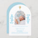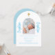 Invitation Bébé blanc bleu photo arch script garçon Baptême