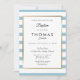 Bébé baptême à rayures bleues ou invitation à baptiser avec une élégante bordure fausse feuille d'or encadrant vos détails spéciaux de célébration dans la typographie moderne. Conçu par Thisisnotme©