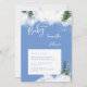 Invitation baby shower. Informations sur l'avant et l'arrière. Neige. Les arbres d'hiver. Bébé, il fait froid dehors. Arrière - plan blanc et bleu.