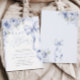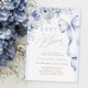 Célébrez la saison des nouveaux débuts avec cette invitation baby shower douce Baby in Bloom, avec des fleurs bleues douces, un arc bleu clair délicat, et un design charmant inspiré de coquette.
